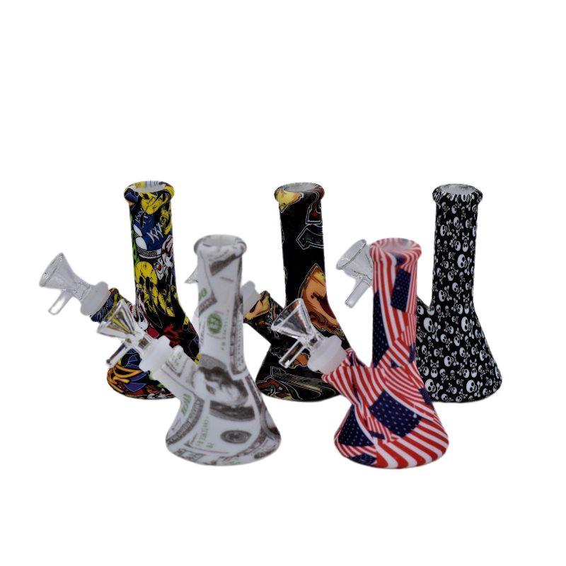 5" Silicone Mini Beaker Water Pipe With Bowl 1 Count **Various Designs & Patterns