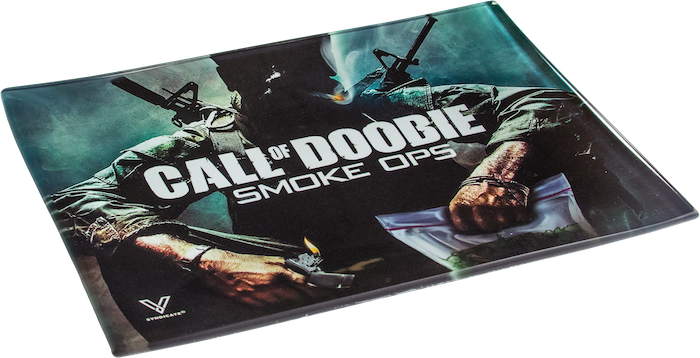 Call of Doobie Glass Tray Two sizes: Small (6.5 in. x 5 in.) Inside Box (7.25 in. x 5.5 in.) Medium (10 in. x 6.25 in.) Inside Box (11 in. x 7.5 in.) Made from high quality tempered shatter resistant glass.